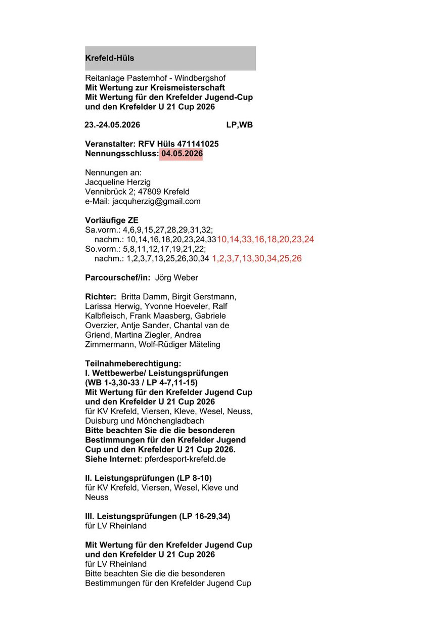 Zur Vorbereitung findet am 16.05.2026 ein Warm-Up für Dressur und Springen statt.